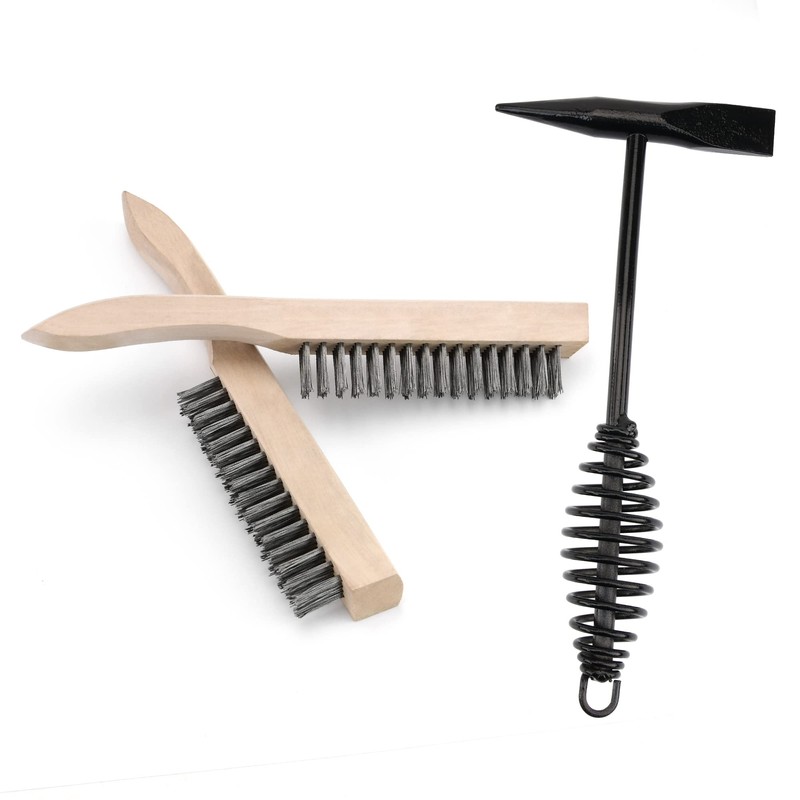 - Material: The welding chipping hammer made of high carbon steel for maximum strength and safety. Stainless Steel Wire brush bristles are firmly embedded into the brush body for higher toughness and wear resistance. Hardened wire for less broken wires and lasts longer, helping you remove dirt quickly