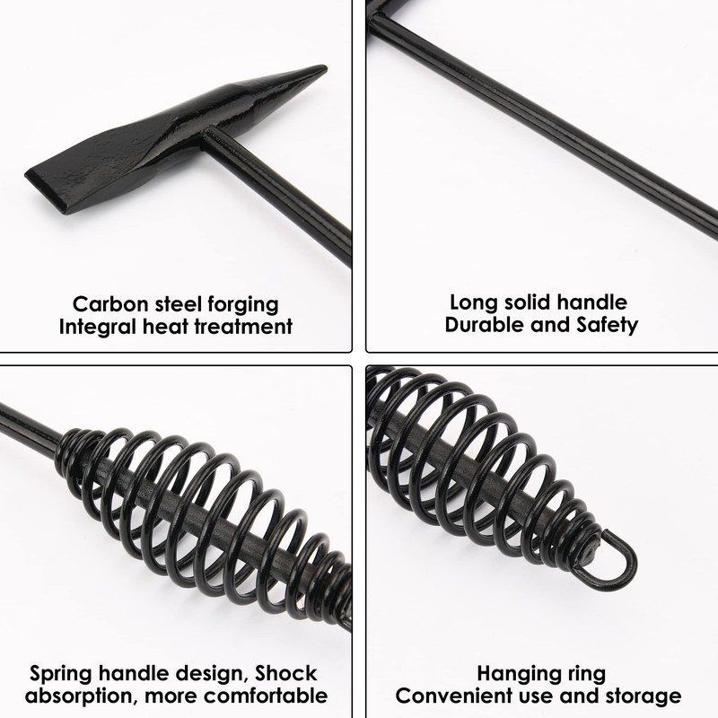 - Design: The wire scratch brush has an ergonomic handle and totals length 9.5 inch,the handle has a long bend that provides a comfortable grip and easy cleaning of nooks and crannies. Welding slag hammer with spring handle design, absorb the impact of contact, shock absorption, more comfortable