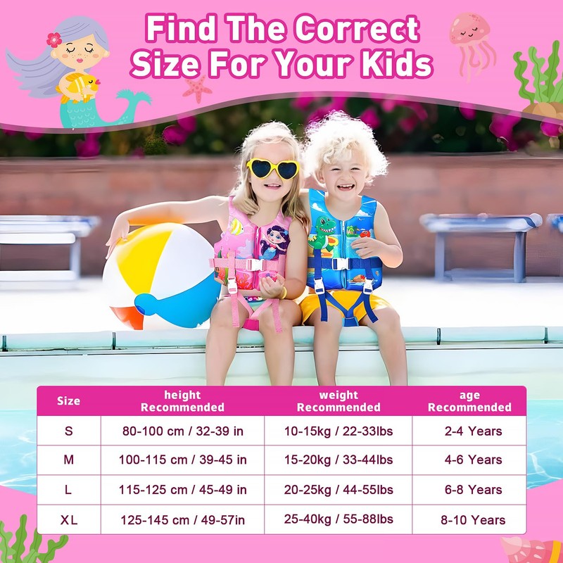- Perfect Fit for Ages 2-10: Four sizes cater to kids weighing 22-88 lbs, ensuring a snug fit for all ages, making their swimming experience delightful.