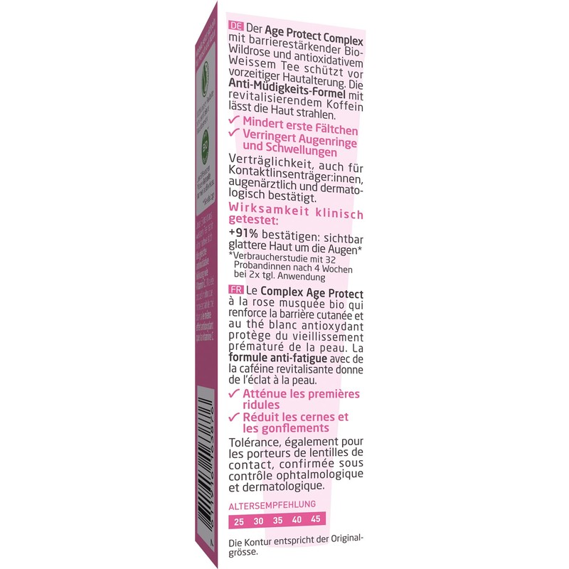 - STÄRKT DIE ABWEHRKRÄFTE DER HAUT: Der Age Protect Complex, welcher Bio Wildrosenöl und Bio Weißer Tee kombiniert, schützt die Haut vor vorzeitiger, umweltbedingter Hautalterung. Die vegane Augenpflege Creme regeneriert die Hautbarriere und sorgt für sichtbar glattere Haut