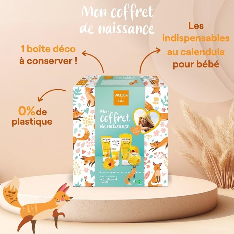 - MY BIRTHDAY SET WELEDA: A complete baby care set with extract of organic marigold extract to naturally clean, protect and soothe baby from birth. Suitable for normal to sensitive skin from the first days of life. Gift box includes: a baby bath towel made from organic cotton, ideal for the bath evening. A fluffy and absorbent material. Size of the bathrobe: 70 x 70 cm.