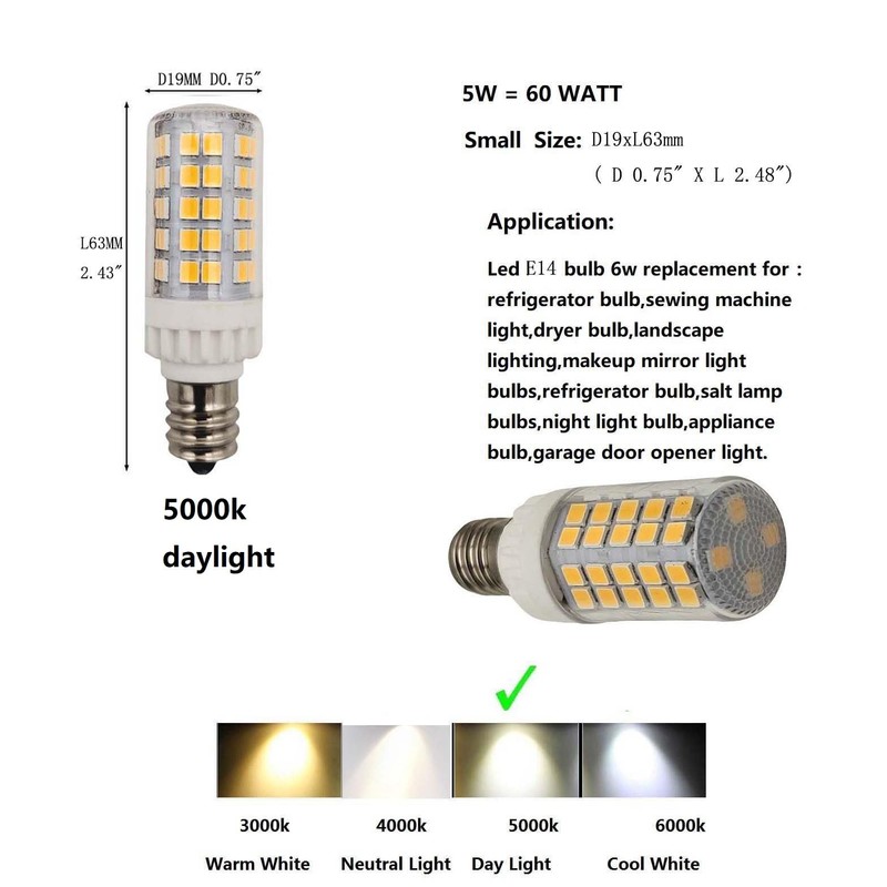 - Eco-friendly & Energy Saving: E14 Led Bulb Microwave Oven Light 5w Replacement 60 Watt Incandescent Save Up To 90% On Electricity Bill,light Bulb For Chandelier, E14 5w Bulb Good For Ceiling Fan And Various Kind Of Light Fixture;