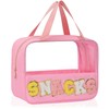 WELIDAY Chenille Letter Snacks Bag Zipper Pouch TPU&Nylon Clear Cosmetic Bag with Handle Toiletry Bags Travel Makeup Bag Multi-purpose Clear Pouches For Women