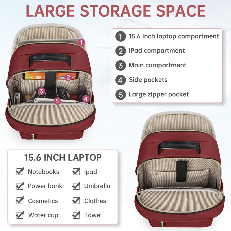 - 【Travel-Friendly & Comfortable】Designed for the modern traveler, our backpack meets airline carry-on requirements and fits perfectly under airplane seats. The adjustable, breathable shoulder straps distribute weight evenly, making it comfortable for long trips. Plus, a luggage strap lets you attach the backpack to your suitcase handle, freeing your hands