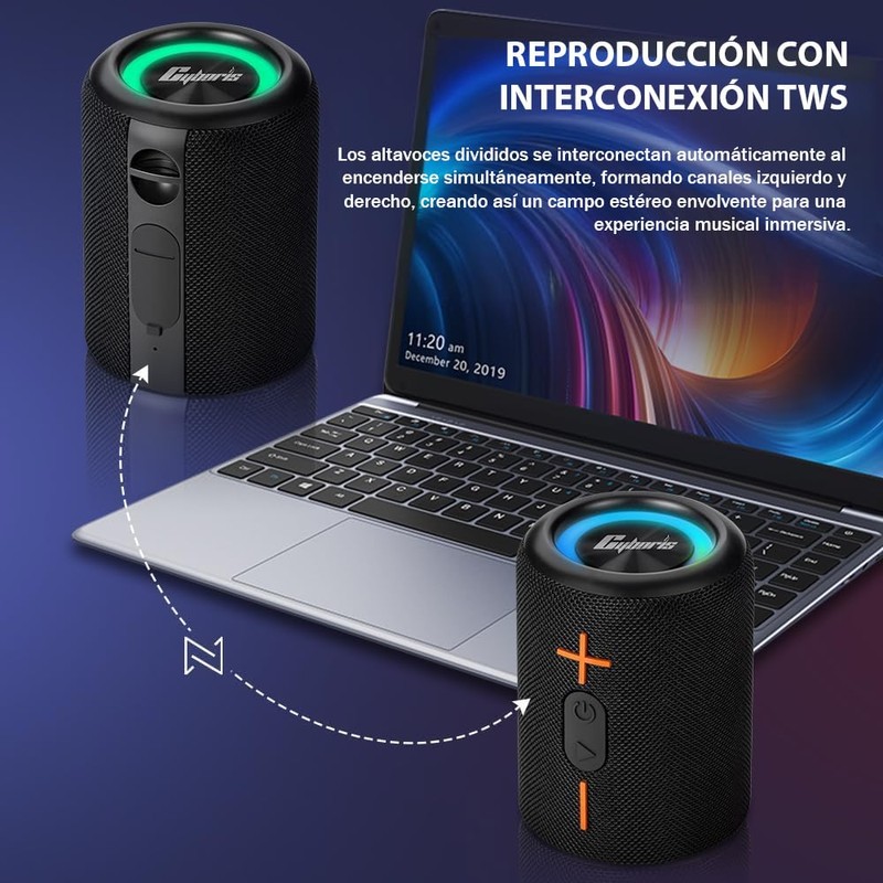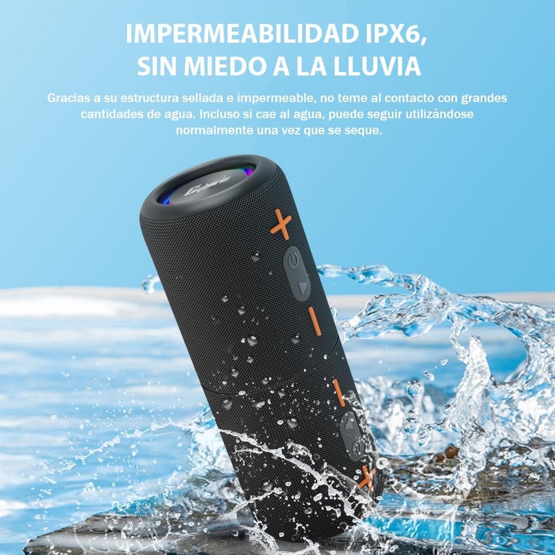 - Altavoz Divisible: Este bocina bluetooth portátil puede conectarse y emparejarse para producir un sonido envolvente de 360 grados, y cuando se separa, ofrece un sonido estéreo superior, perfecto para fiestas.