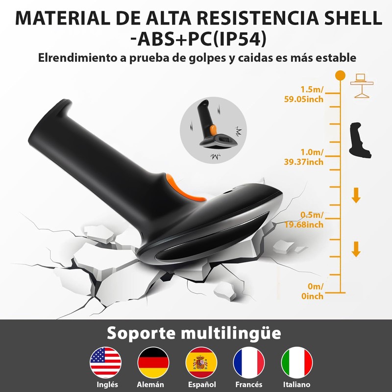 - 🤚👍【Diseño Inteligente Lector de Barras Bluetooth con Soporte】 Lector codigo de barras inalambrico es cómodo de sostener; lector de códigos de barras inalámbrico tiene la función de reconocer 1D / 2D;lector codigo de barras inalambrico cubierta protectora de silicona a prueba de golpes puede evitar arañazos y fricciones al caer desde una altura de 1.5m; lector codigo de barras inalambrico tecnología IP54 puede proteger el lector de códigos de barras inalámbrico del polvo.