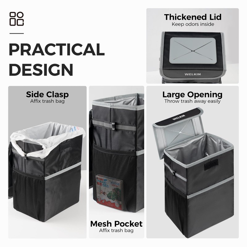 - 【PARTICAL LARGE CAPACITY】: 2.2 gallons (11.4*8.3*5.9 in) capacity can easily carry the waste generated by the daily travel, and it is compatible with all car models.