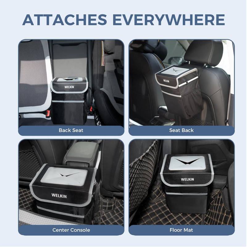 WELKIN Car Trash Can with Lid, Waterproof & Leakproof Bin, Hanging Garbage Storage Pockets for Car, Home, Office -Mini Accessories (Black)