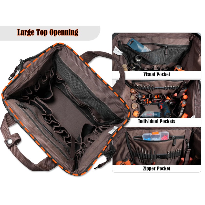 - Easy-Access: This tool backpack heavy duty is designed with a rugged IronRod open-top for easy access to the tools, the black and brown color makes the tools more clearly identifiable and easily seen
