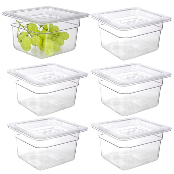 WELKOR 6 Pack Food Pan with Lids,1/6 Size Shatterproof Stackable Plastic Hote...