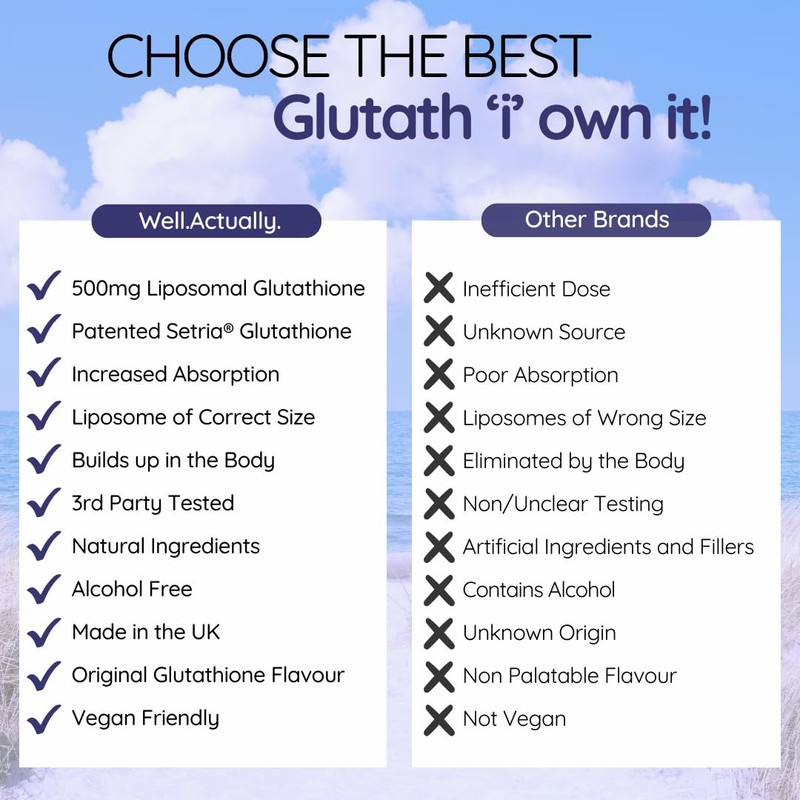 WELL ACTUALLY Pure Liposomal Glutathione 500mg (50 Servings - 250ml) High Bioavailability Setria® Glutathione Supplement - Powerful Antioxidant for Skin and Body Detox - Vegan, Unflavoured
