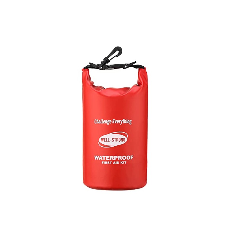 WELL-STRONG Dual Waterproof First Aid Kit Boat Emergency Kit with Buckles for Fishing Kayaking Boating Swimming Camping Rafting Beach Red