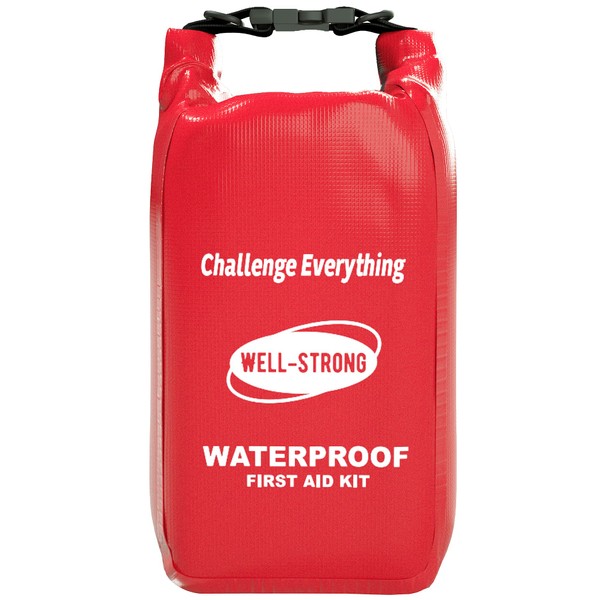 WELL-STRONG Waterproof First Aid Kit Roll Top Boat Emergency Kit with Waterproof Contents for Fishing Kayaking Boating Swimming Camping Rafting Beach Red
