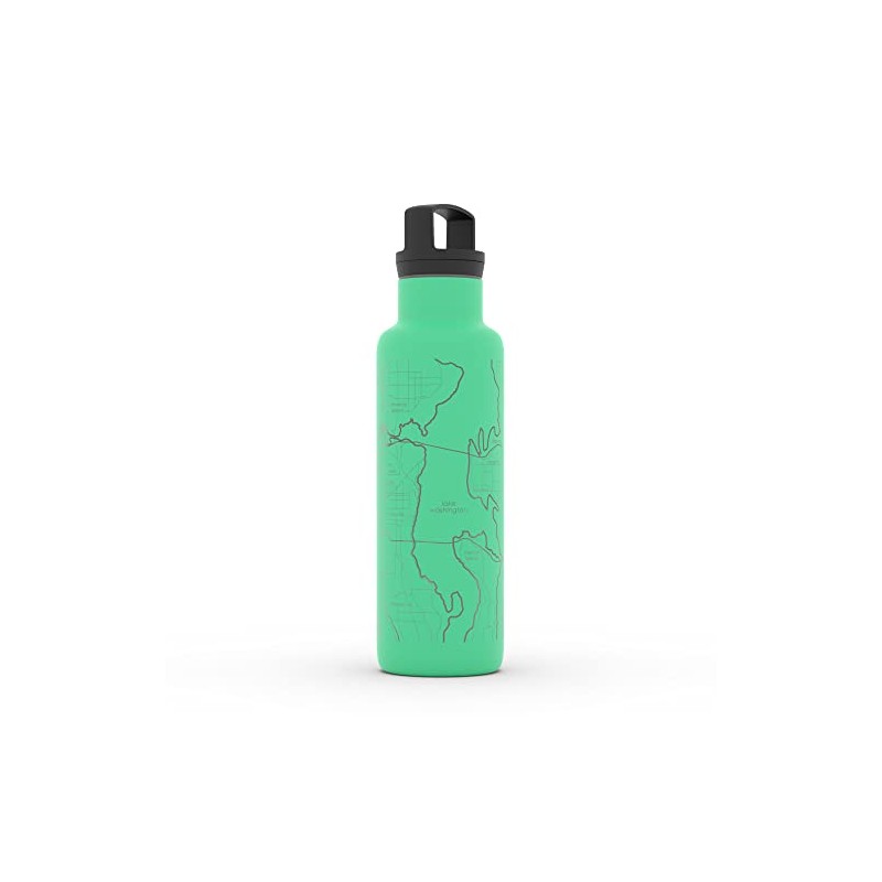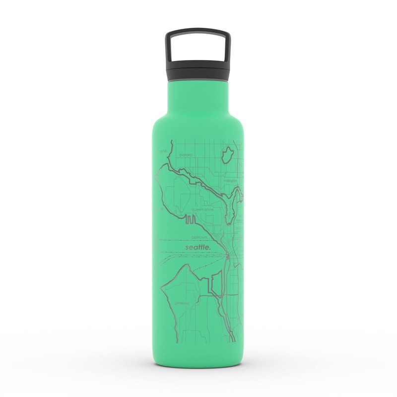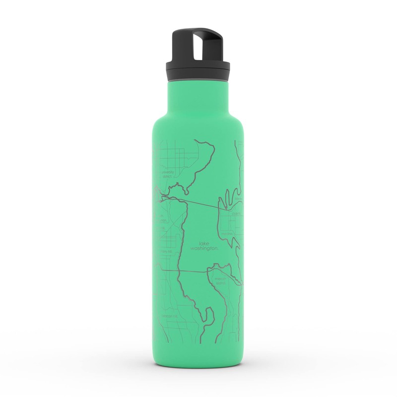 Well Told Engraved Seattle Washington Map Insulated Water Bottle, Etched Stainless Steel Bottle (21 oz, Sunday Green) City Map Insulated Bottle, Custom Insulated Water Bottle, Outdoor Drinkware
