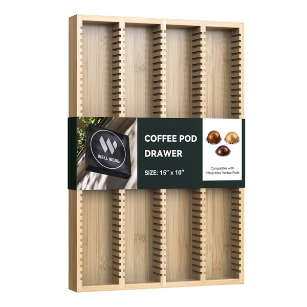 WELL WENG for Nespresso Vertuo Capsules - Premium Bamboo Coffee Pod Drawer Insert Organizer for Counter (40 Big or 52 Small pods)