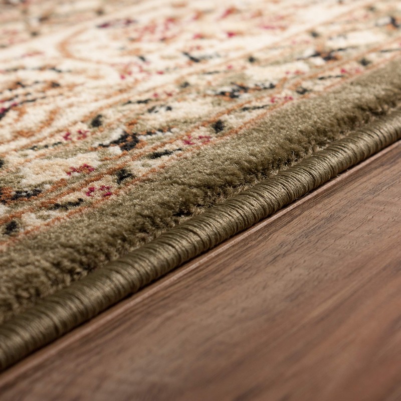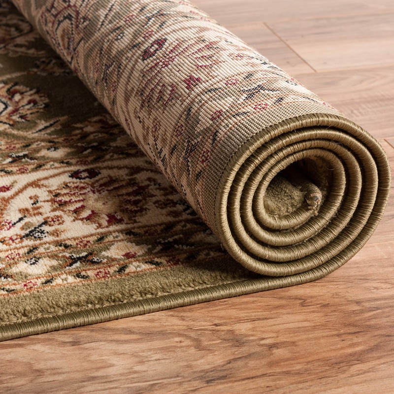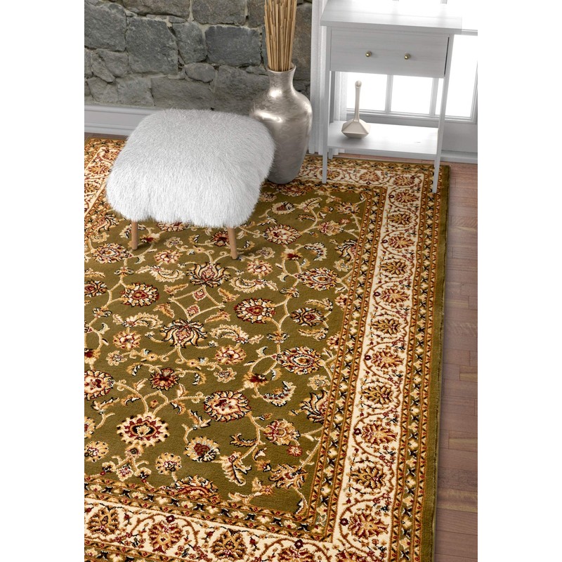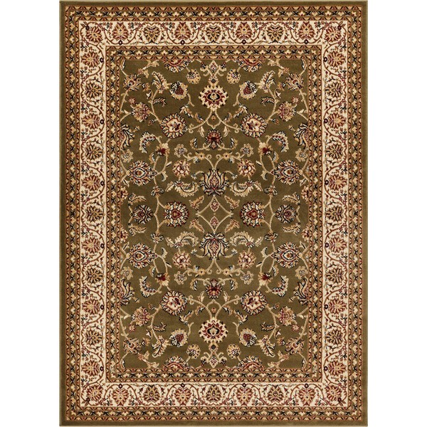 Well Woven Barclay Sarouk Green Traditional Area Rug 3'11'' X 5'3'' brings together an array of patterns drawn from a carefully selected palette of Modern, European, and Persian Styles. Warm red, green, and blue jewel tones are accented by neutral tones of ivory and beige. The heat set polypropylene fiber gives a 0.4" pile that is soft, stain resistant, and doesn’t shed or fade over time. The 100% jute backing is safe for wood floors and all four sides of the rug are serged for improved durability. A wide range of shapes, sizes, and designs means this collection has something for rooms of every size and style