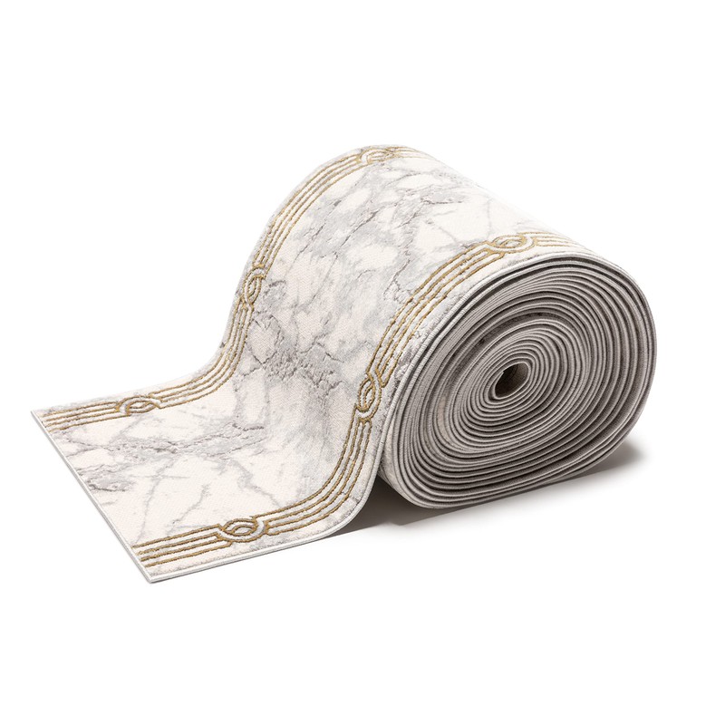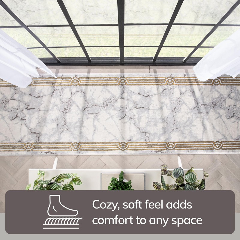 Well Woven Custom Size Hallway Stair Runner - Choose Your Length - Fairmont Collection Lezlee Ivory Gold Abstract Marble Border 26 Inches Wide x 20 Feet Runner (26" x 20')