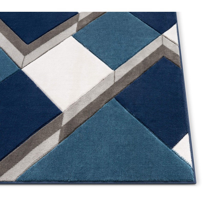 Well Woven Good Vibes Nora Blue Modern Geometric Stripes and Boxes 3'11 x 5'3" 3D Texture Area Rug, 3 ft 11 in x 5 ft 3