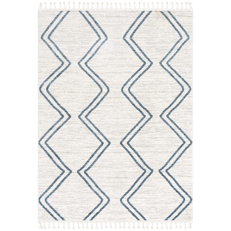 Well Woven Merri Blue Ivory Geometric Stripes Pattern Stain-Resistant Area Rug 5x7 (5'3" x 7'3")