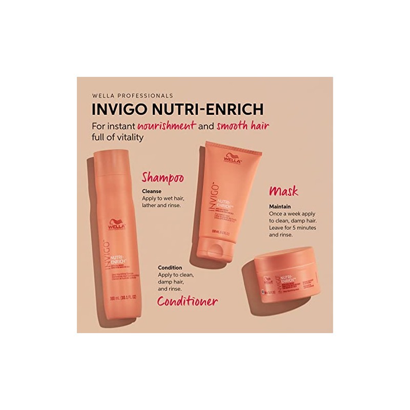 - Invigo Nutri-Enrich Shampoo, a deep nourishing shampoo especially designed to treat and repair dry or stressed hair