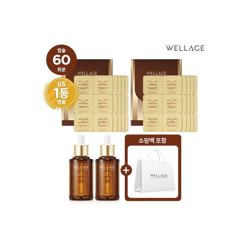 Volume or weight of contents ■ Wellage Real Hyaluronic Biolift Capsule 20mg ■ Wellage Collagen Gold Solution Ampoule 45ml Product main specifications Freeze-dried hyaluronic acid capsules/all skin types Expiration date or period of use after opening ■ Biolift Collagen Capsules 30 pieces: After 2022.10 (36 months before opening, use immediately after opening) ■ Collagen Gold Solution Ampoule: After 2022.08 (36 months before opening, 12 months after opening) ■ Shopping bag: After 2023.07 How to use ■ [Capsule + Ampoule] Open one capsule, take enough to apply the solution to the entire face, and drop the capsule. Spread the capsules in liquid form evenly on the skin and allow them to be absorbed. You can finish your skin care as is, or if you have dry skin type, you can add a lotion or cream step. Cosmetics manufacturer, responsible cosmetics seller, and customized cosmetics seller ■ Cosmetics Manufacturer: Capsule (Bliss Pack), Collagen Gold Ampoule (Cosmax) ■ Cosmetics Responsible Distributor: Hugel Co., Ltd. Country of manufacture korea All ingredients that must be listed and labeled according to the Cosmetics Act ■ Biolift Collagen Capsule: Sodium Hyaluronate, Hydrolyzed Collagen, Ethylhexyl Olivate, Algin, Olive Oil PEG-7 Ester ■ Collagen Gold Solution Ampoule: Purified water, collagen extract, glycerin, butylene glycol, Glycereth-26, 1,2-hexanediol, niacinamide, carrageenan extract, sugar cane extract, cacao seed extract, sunflower seed oil, white lupine seed extract, choles-24, sodium polyacrylate, ethylhexyl glycerin, methylcellulose Methamine, adenosine, dextrin, sorbitan laurate, hydroxyethyl cellulose, acetyl dipeptide-1 cetyl ester, palmitoyl tripeptide-5, polysorbate 20, tocopherol, palmitoyl tripeptide-1, palmitoyl tetra. Peptide-7, xanthan gum, carbomer, disodium EDTA, phenoxyethanol, gold (CI 77480) In the case of functional cosmetics (whitening, anti-wrinkle, UV protection products, etc.) under the Cosmetics Act, the phrase “Functional cosmetics must be reviewed (or reported) under the Cosmetics Act.” ■ Biolift Collagen Capsule: Not applicable ■ Collagen Gold Solution Ampoule: Whitening, wrinkle improvement functional cosmetics Product composition 1 2 boxes of Biolift Collagen Capsules (30 pieces) + 2 bottles of Collagen Gold Solution Ampoules UV protection factor Not applicable Precautions when using 1) If there are any abnormal symptoms or side effects, such as red spots, swelling, or itching, when using cosmetics or after use, due to direct sunlight on the area of use, consult a specialist. 2) Refrain from using on areas with wounds, etc. 3 ) Precautions for storage and handling a) Store out of reach of children b) Store away from direct sunlight Efficacy / Effect Helps with moisturizing Recommended target, age adult Raw materials/ingredients Hyaluronic acid Product composition 2 1 shopping bag (295*120*250mm) Product composition 2 Country of origin korea Product composition 2 Manufacturer Samil Printing Consumer consultation phone number 1544-5339 Operating hours: 09:00 ~ 18:00 (excluding lunch time, 12~13:00) (excluding weekends and public holidays) Quality assurance standards We provide compensation in accordance with the Fair Trade Commission Notice (Consumer Dispute Resolution Standards). Quality guarantee period 1 year Return/cancellation date See detailed page Origin information korea