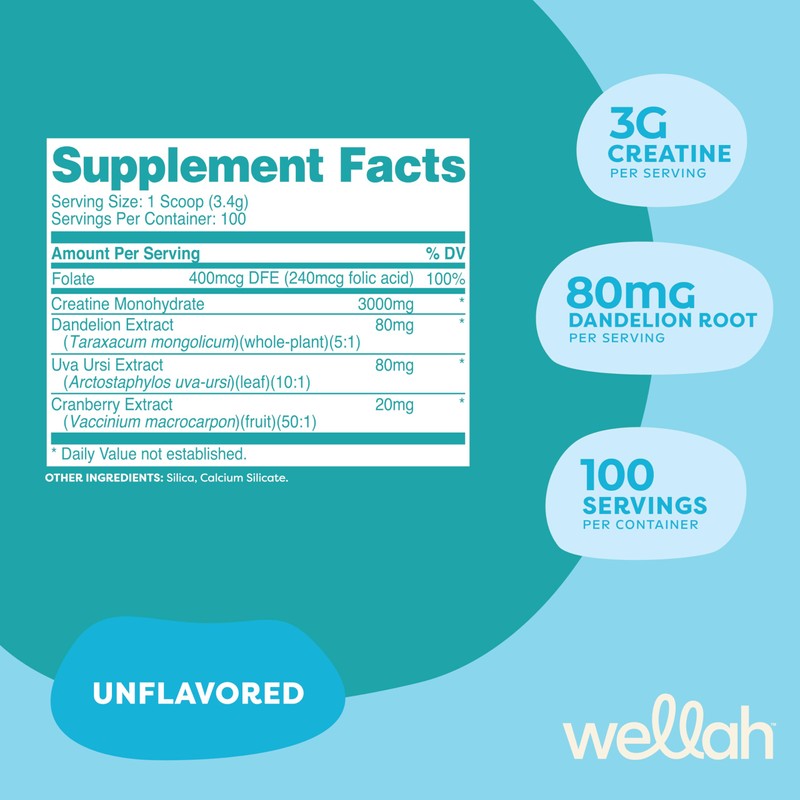 Wellah Wellah Pump-It-Up Creatine (100 Servings, Unflavored) - Creatine Monohydrate with Dandelion, Uva Ursi, & Cranberry Extract