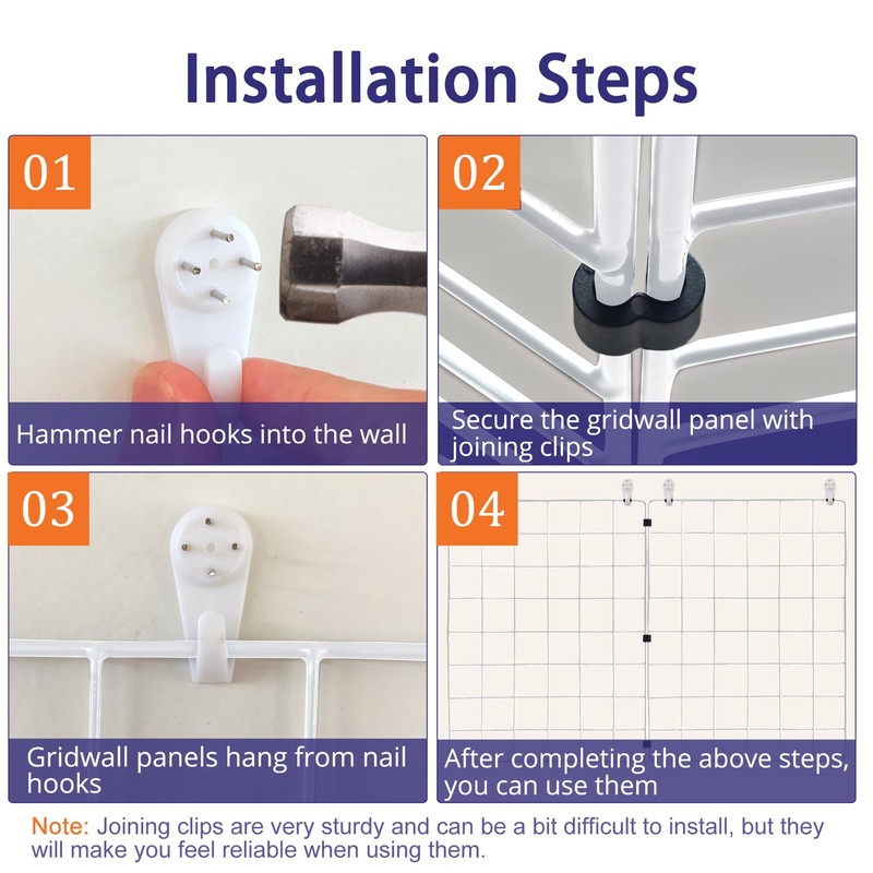 - 【EASY INSTALLATION】 Just a few hooks can be fixed to the wall grid panel on the wall. Once installed, you're ready to create a captivating display. The process is straightforward and seamless.