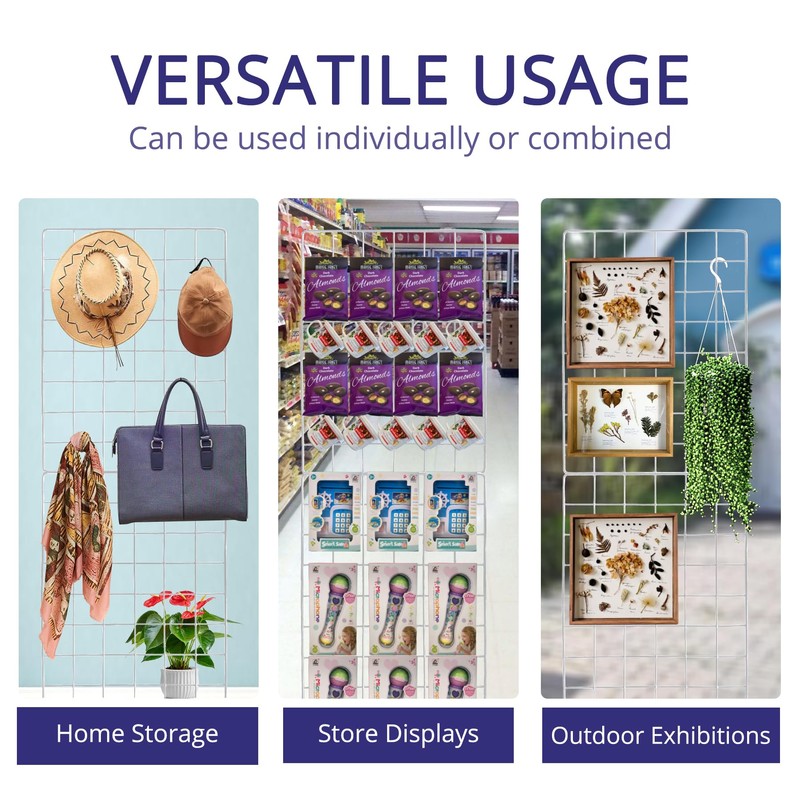 - 【VERSATILE DISPLAY】 Embrace the versatility of our grid wall! This wall grid panel is an ideal choice for retail displays, item organization and storage, and decorative enhancement. It is a gridwall panel that attracts attention effortlessly.