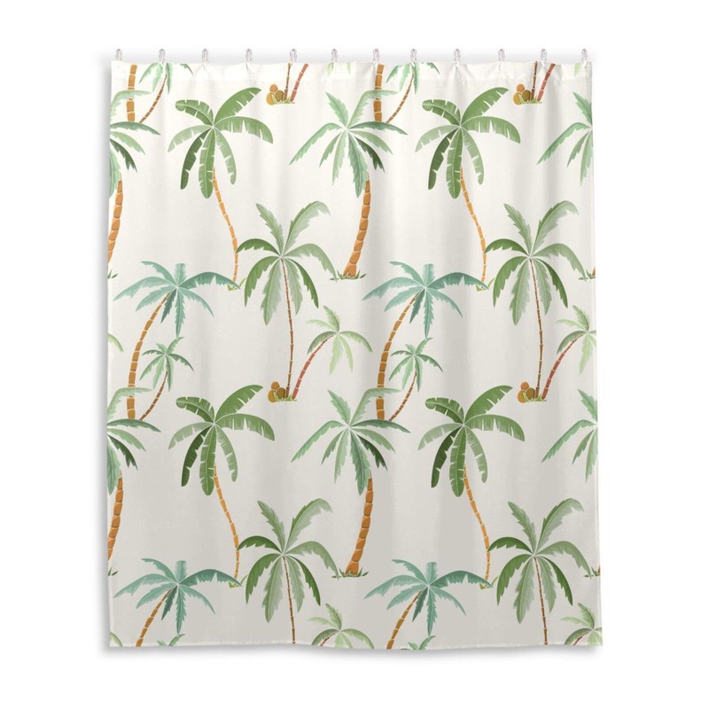 WELLDAY Shower Curtain Palm Trees on Beige Bathroom Decor Waterproof Fabric with Hooks 60x72 Inch