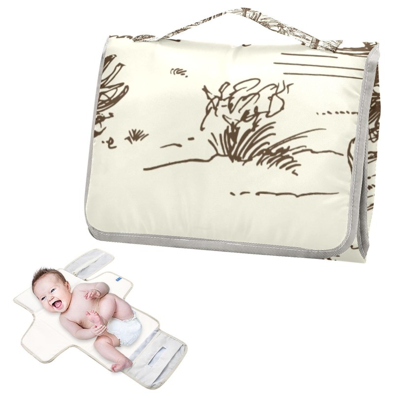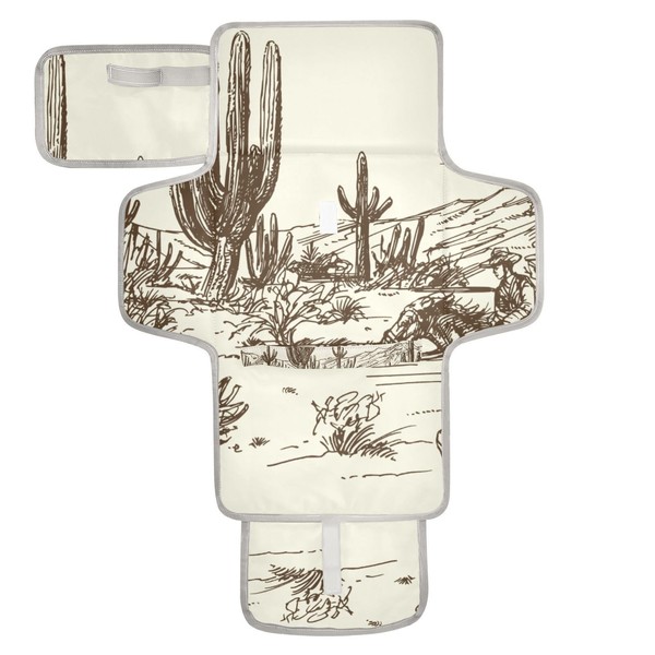 WELLDAY Wild West Desert Cowboy Baby Changing Pad - Waterproof Diaper Changing Pad with Built-in Pillow - Portable Travel Changing Mat for Newborn Girl & Boy