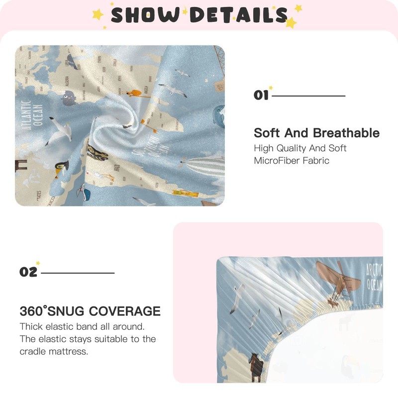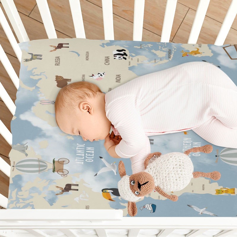 WELLDAY World Map Crib Sheets for Boys and Girls, Fitted Baby Crib Sheets Soft and Breathable Mini Crib Sheets 39 X 27 X Inches