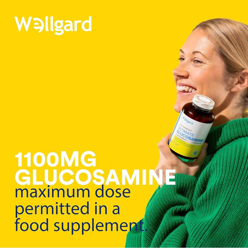 • ★ ULTIMATE VEGAN GLUCOSAMINE - Wellgard Ultimate Glucosamine+ provides more Glucosamine base per daily dose when compared to many brands. With 1100mg per daily dose, our glucosamine supplement provides the maximum dose permitted in a food supplement.