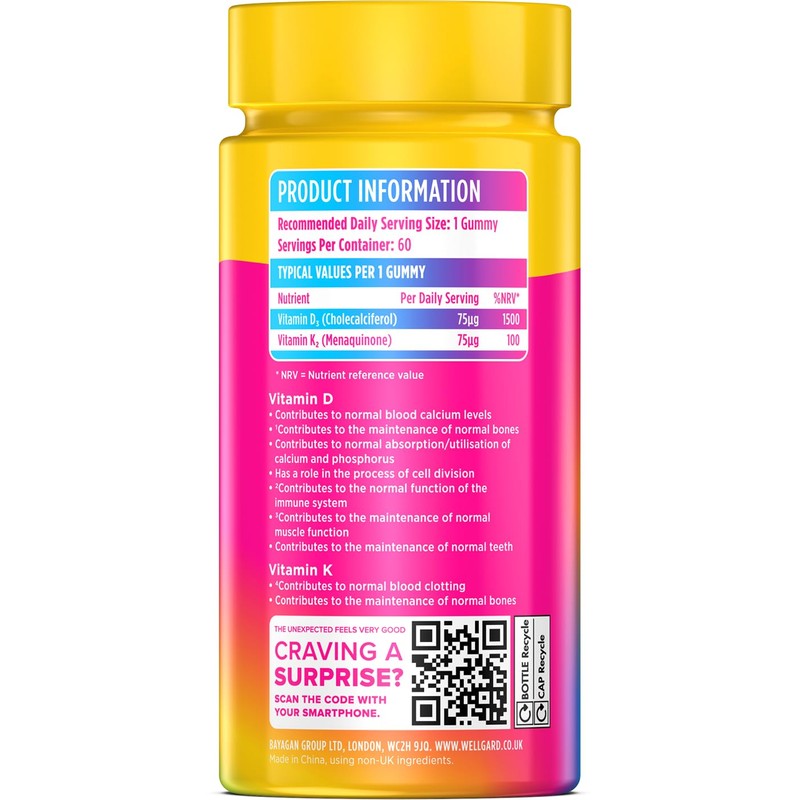 Wellgard Vitamin D3 K2 Gummies – Vitamin D3 K2 Gummies, Supports Bone Health, Immune System and Muscle Health