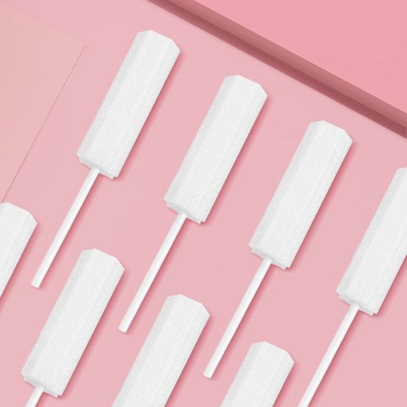 • SOFT MATERIAL This type of sponge stick is composed by soft and latex free sponge with high water absorbent and shaft which is white paper rod.