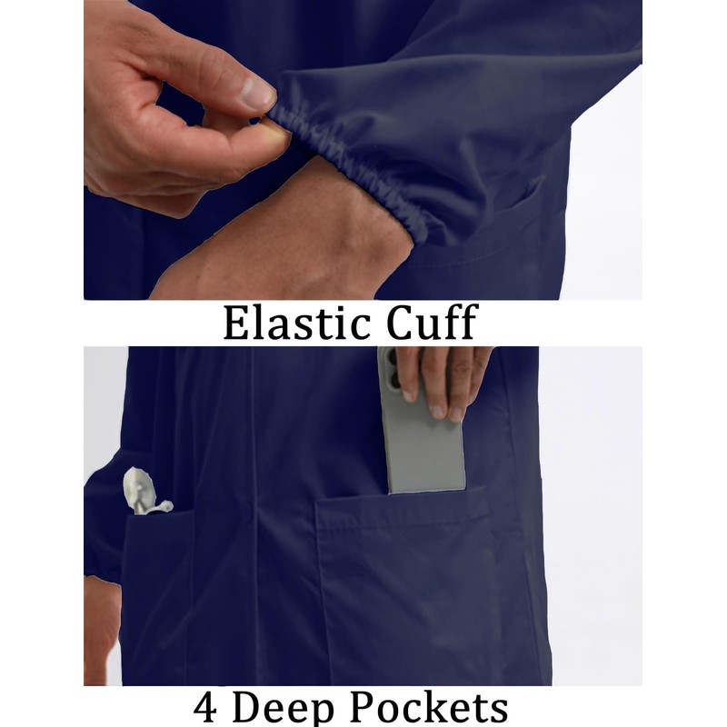 Wellhin Men's Navy Blue Lab Coats Snap Closure 4 Pockets Elastic Cuffs Profes...