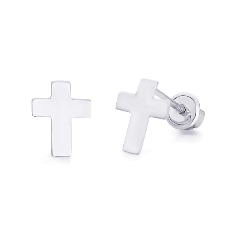 Wellingsale 14K White Gold Polished Cross Stud Earrings With Screw Back