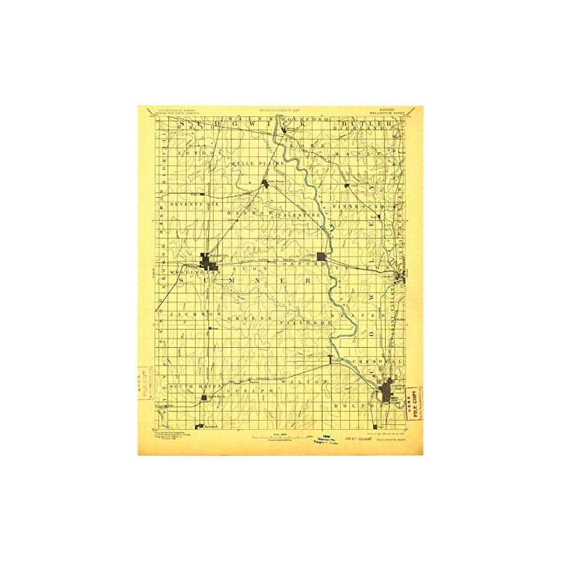 Wellington KS topo map, 1:125000 Scale, 30 X 30 Minute, Historical, 1890, Updated 1910, 19.59 x 16 in - Polypropylene