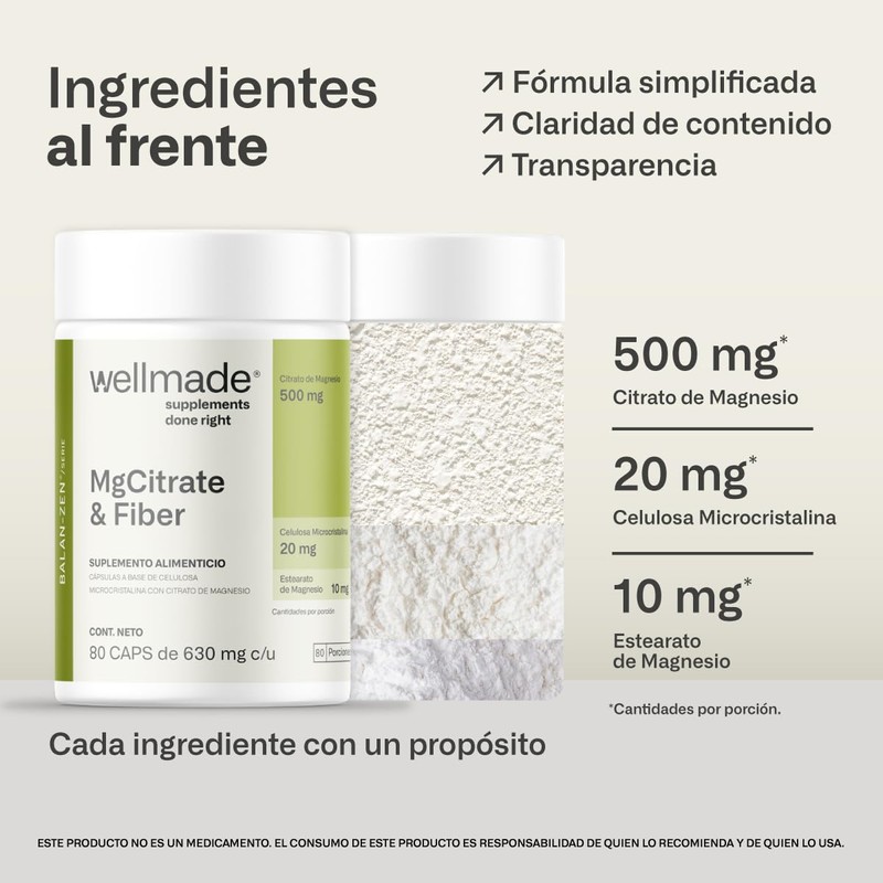 - Ingredientes de Alta Calidad: Cada cápsula de WELLMADE Citrato de Magnesio contiene una mezcla de citrato de magnesio, celulosa microcristalina (una fuente de fibra) y estearato de magnesio, convirtiéndolo en un producto de calidad para tu bienestar.