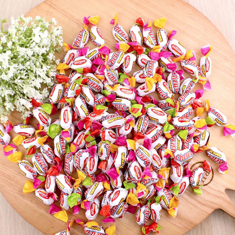 - CHEWY FRUIT CANDIES: Available in a bulk 28.2 ounce assortment pack, these soft chewy candies are flavorful fruit candies made to satisfy sweet cravings with delicious tropical flavor & chewiness. You’ll have plenty to fill your snack bucket, candy dish or refreshment station!