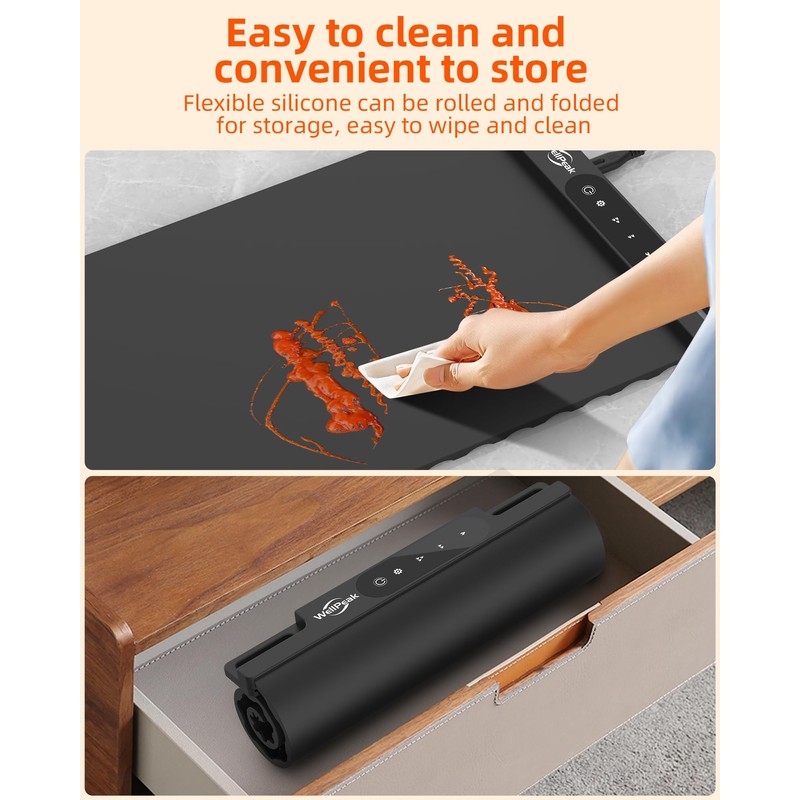WELLPEAK 2-Pack Electric Warming Mat for Food, Multi-Functional Silicone Roll-up Warmer Fast Heating Tray with 3-Level Temperature Settings, Auto-Off Protection, Safe for Countertops & Tables (Black)