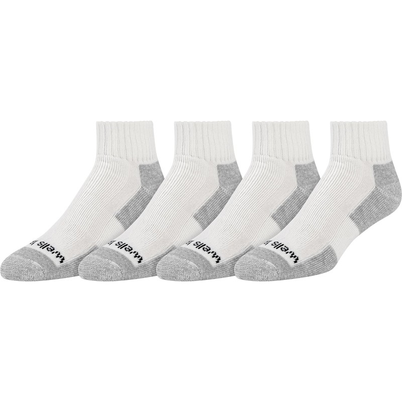 • BACKED BY LEGACY: The Wells Lamont trademark means quality. For over 100 years, they have been manufacturing high quality and innovative products. These socks are machine washable. They come in a 4 pack quarter sock, in white, in size large that fits shoe size 8-12.