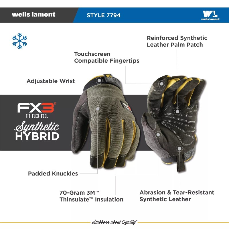 Wells Lamont Water Resistant Green Gloves with Synthetic Palm Thinsulate Insulation Touchs...