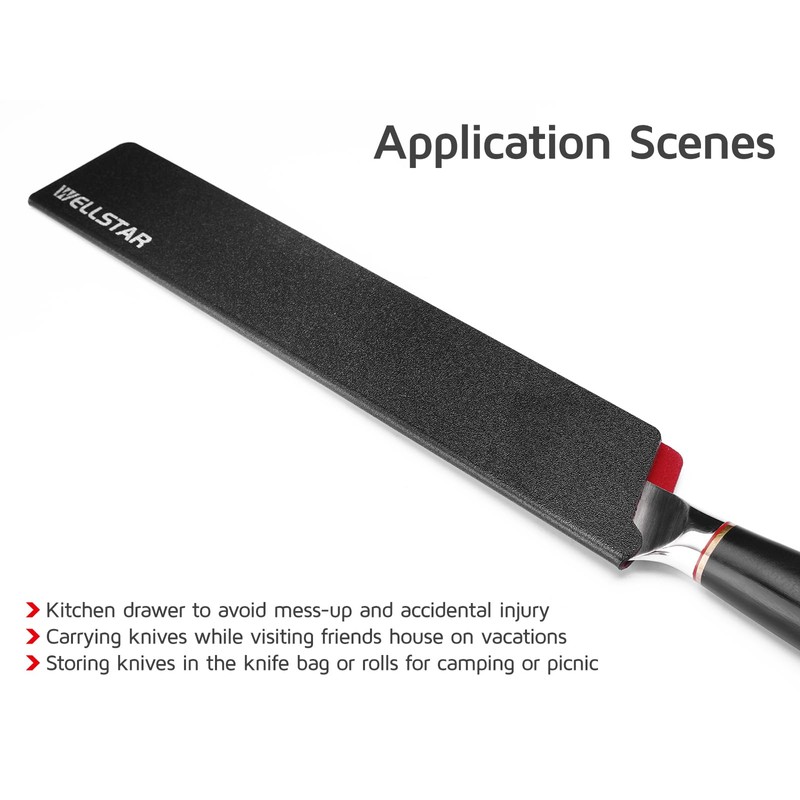 - 【UNIVERSAL KNIFE GUARDS】The cooking knife’s edge guards are created to fit straight or slanted handle knives. These blade edge sheaths are great for 8 inch Chef, 10 inch Chef, 10 inch Bread, 10 inch Carving, 12 inch Chef, 12 inch Bread and Slicing Knives