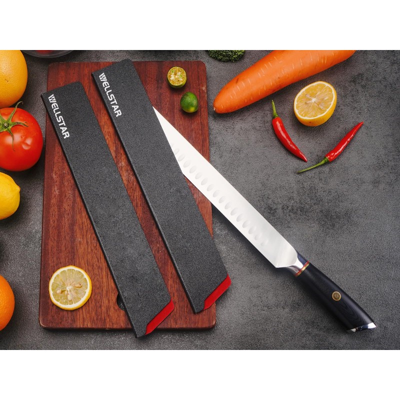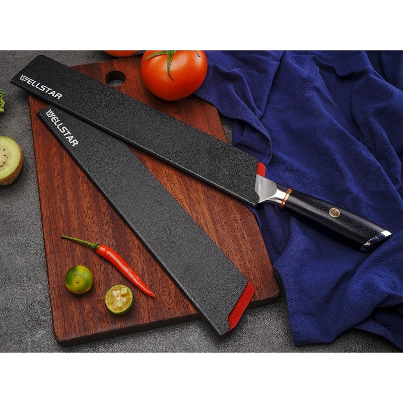 WELLSTAR Knife Edge Guards Set, 2 Piece 12 Inch Universal Blade Covers, BPA Free ABS Protective Long Blade Sheaths, Non-Scratch Felt Lining Kitchen Knives Covers (Knives not included)