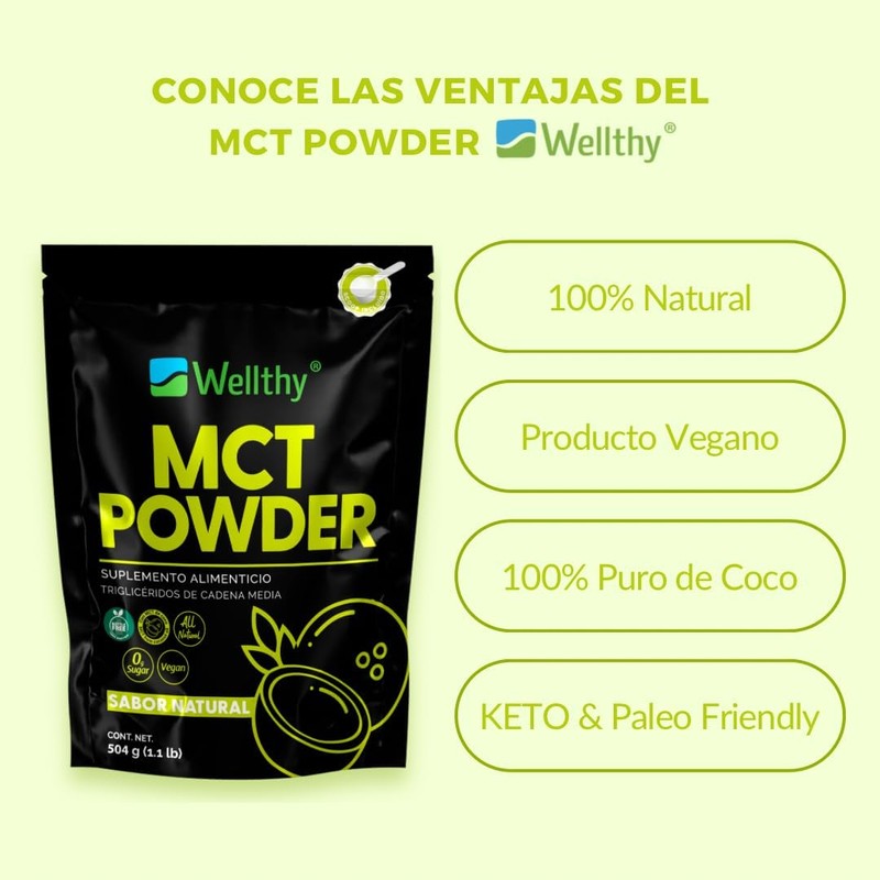 🌱 Beneficios principales de Wellthy MCT Powder 504g: