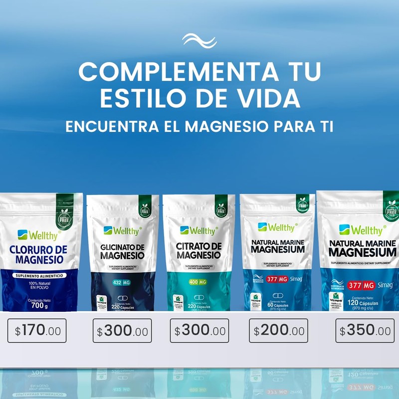 Wellthy Citrato de Magnesio Premium 220 Cápsulas 400mg. 100% Natural, Cápsulas Veganas, Bottle Free, Mas de 2 meses de porciones en 1 Solo Frasco.