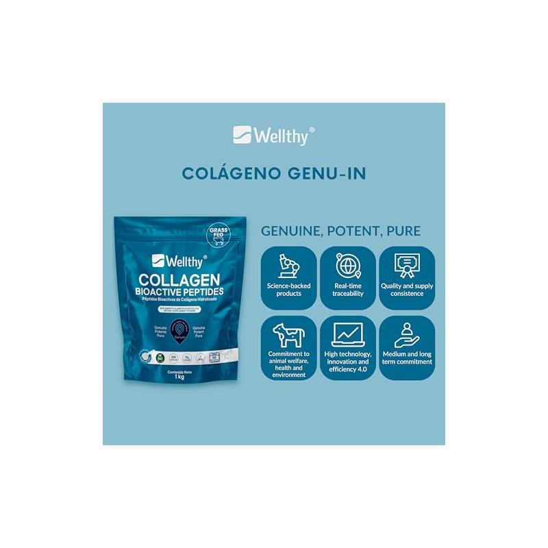 WELLTHY - Wellthy Colageno Hidrolizado Puro 1kg. Péptidos de Colágeno Bioactivos Genu-In®, 66 Porciones por Envase, 1 Solo Ingrediente, SIN Azúcar, Scoop Incluído, Bottle Free.. ⭐ Calidad premium certificada con excelentes reseñas. Materiales de alta gama y acabados premium. 📦 Entrega rápida y segura. Ideal para quienes buscan lo mejor en calidad y estilo. Producto auténtico con satisfacción total asegurada. ¡No te quedes sin el tuyo y aprovecha esta oportunidad única!