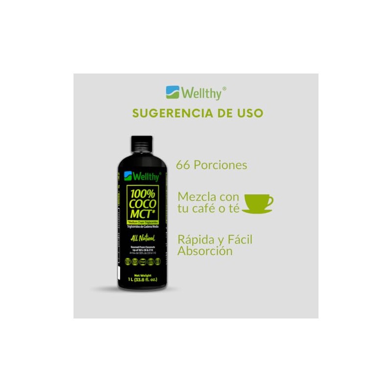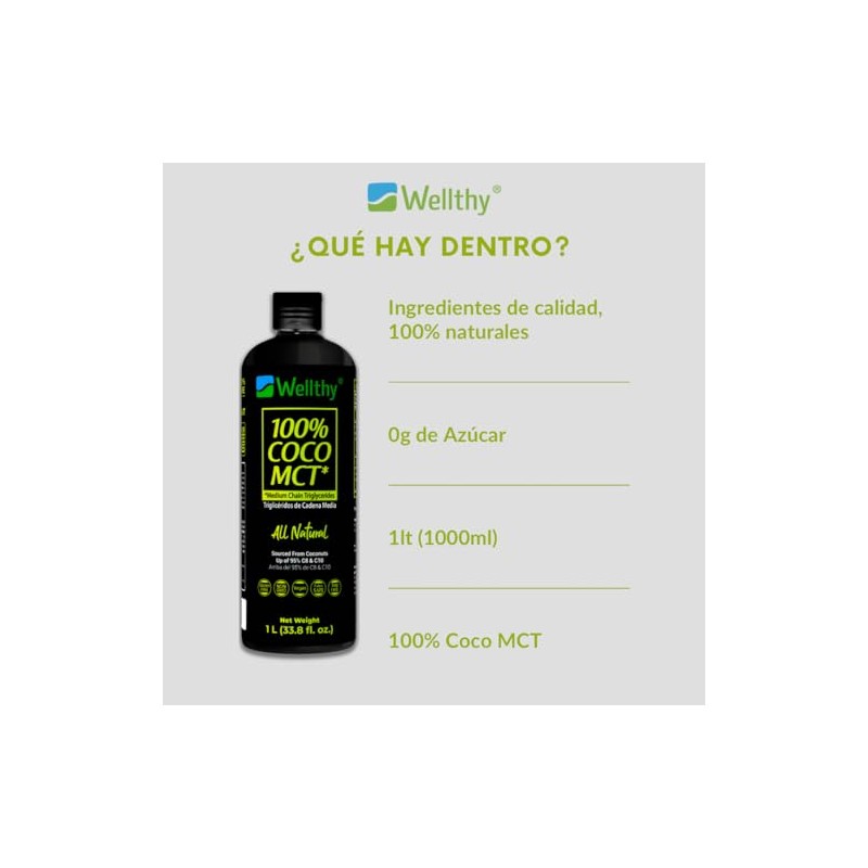 WELLTHY - Wellthy MCT Oil 1 Litro, 66 Porciones, Ácido Caprílico 100% Puro y Natural de Coco, KETO y Paleo Safe, Energía y Concentración, 0g de Azúcar, Gluten Free, NON GMO, Vegan, Libre de Soya, Certificado Internacionalmente, Origen Filipino.. ⭐ Calidad premium certificada con excelentes reseñas. Diseño ergonómico y funcionalidad excepcional. 💎 Calidad superior certificada. Ideal para quienes buscan lo mejor en calidad y estilo. Producto auténtico con satisfacción total asegurada. ¡No te quedes sin el tuyo y aprovecha esta oportunidad única!