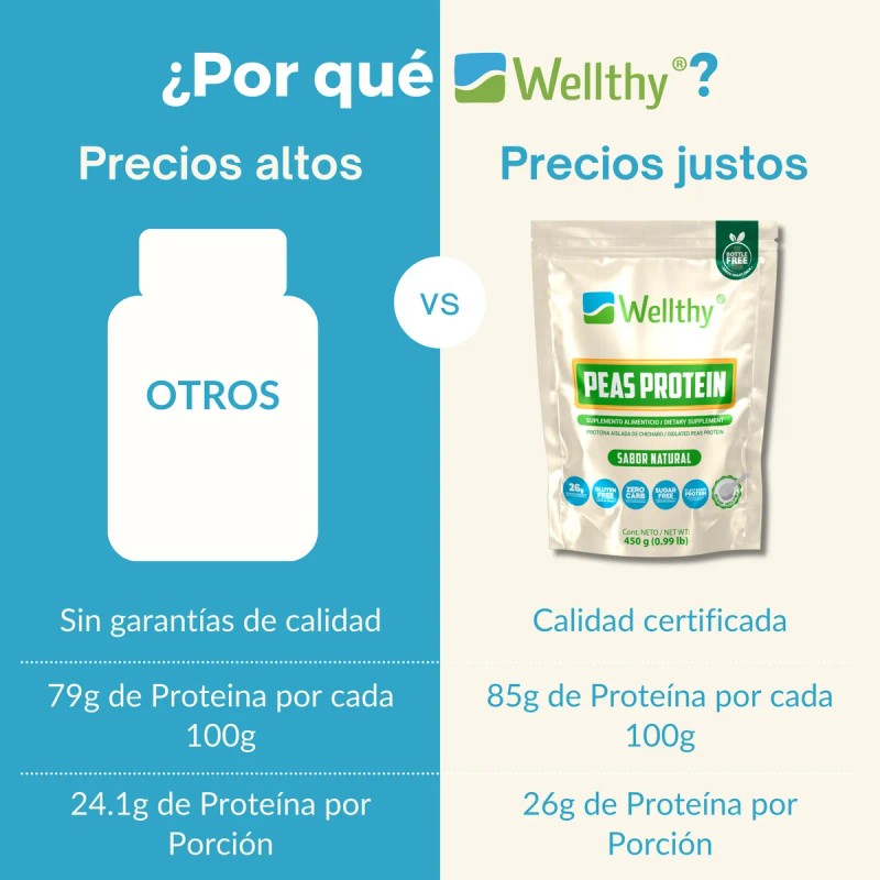 Con Wellthy Proteína de Chícharo Natural, obtienes un suplemento vegetal que combina simplicidad, pureza y eficacia, ideal para cuidar tu salud, tu cuerpo y el planeta. 🌟
