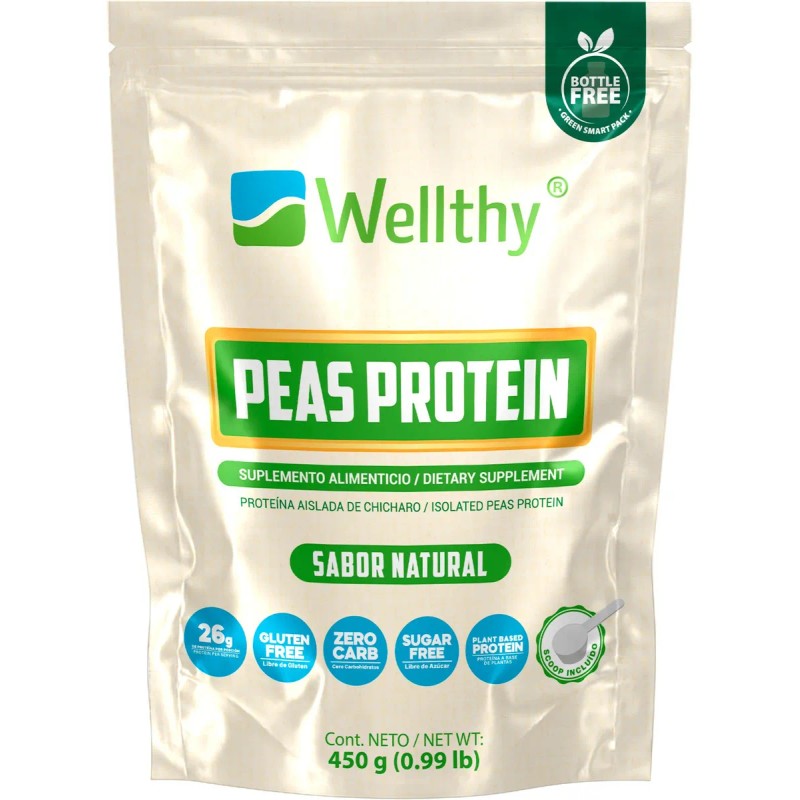 🌱 Wellthy Proteína de Chícharo Natural 450g – Nutrición Limpia, Vegetal y Sostenible | 30 Porciones 💪